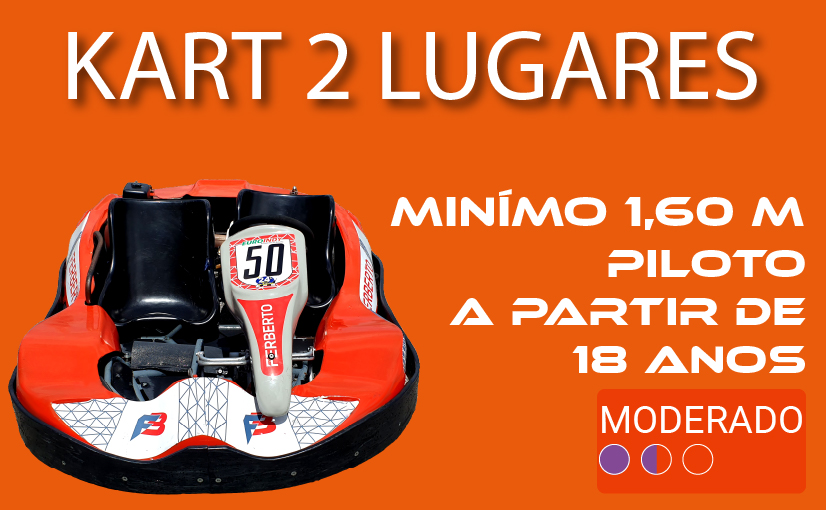 Piloto adultos + acompanhante. 2 kart disponíveis.